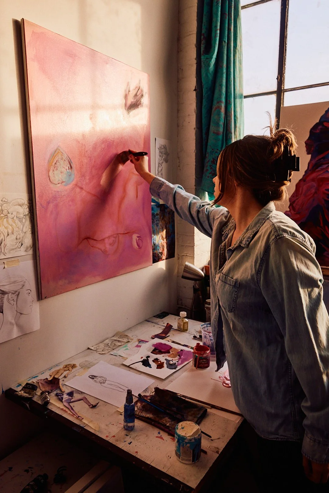 Today, I create paintings, drawings, sculptures, and digital forms of artwork that blend the figuration with an exploration of abstraction that highlight both the vulnerability and resilience of the human body. My practice involves a dissection of the female form through digital lenses. I mix media to find the perfect recipe for art making that keeps my soul nourished and my brain learning new techniques. Whether it’s bending bodies in 3D environments, warping portraits of past lovers, or conjuring avatars in oil paint, I’m interested in the boundaries between the digital and physical self. and how media can be shaped, molded, and help us transcend into enlightened versions of being.