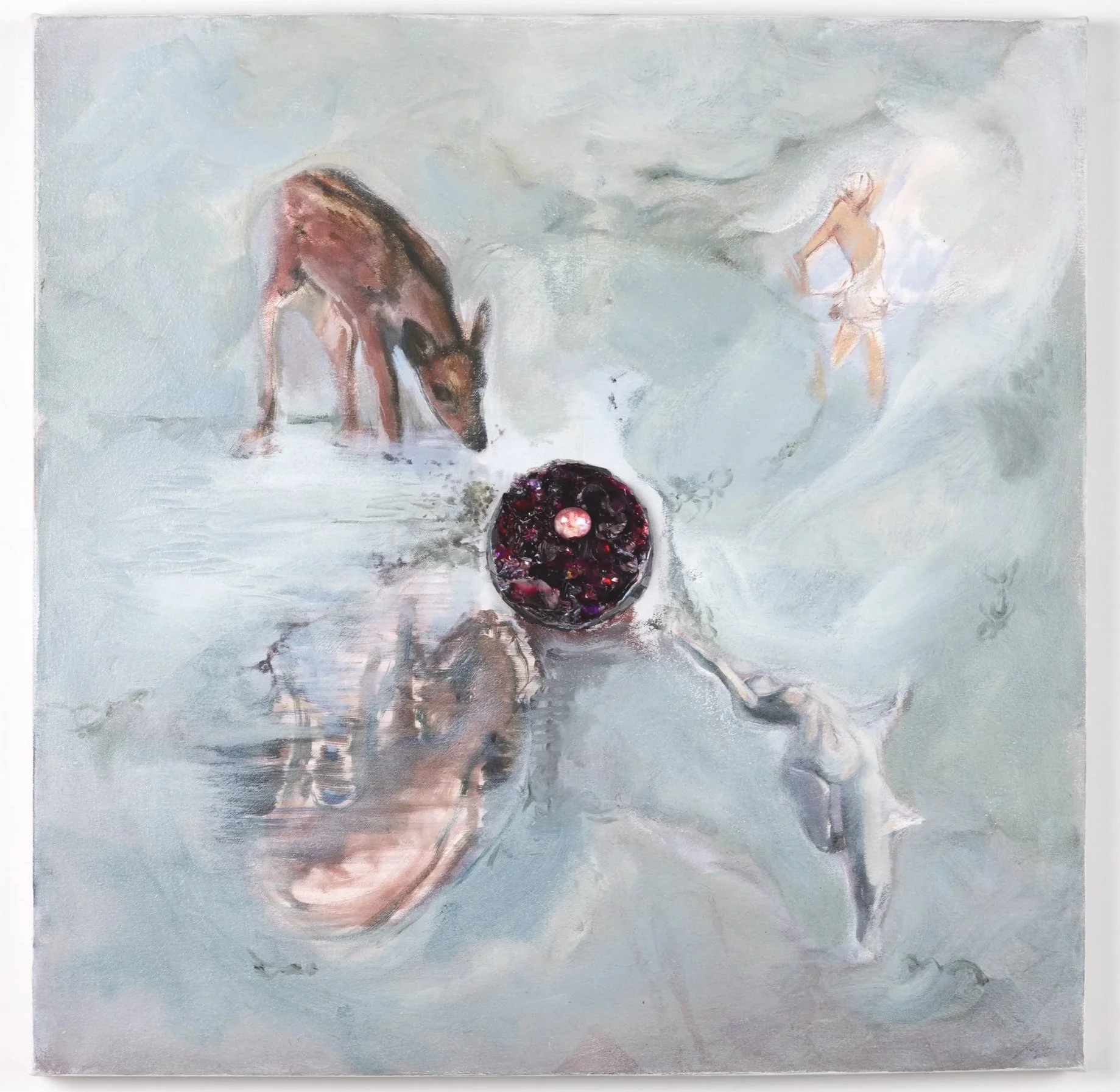How Dear that Door be There!, 2025, Oil, acrylic, resin, & glass on canvas, 24 × 24 in