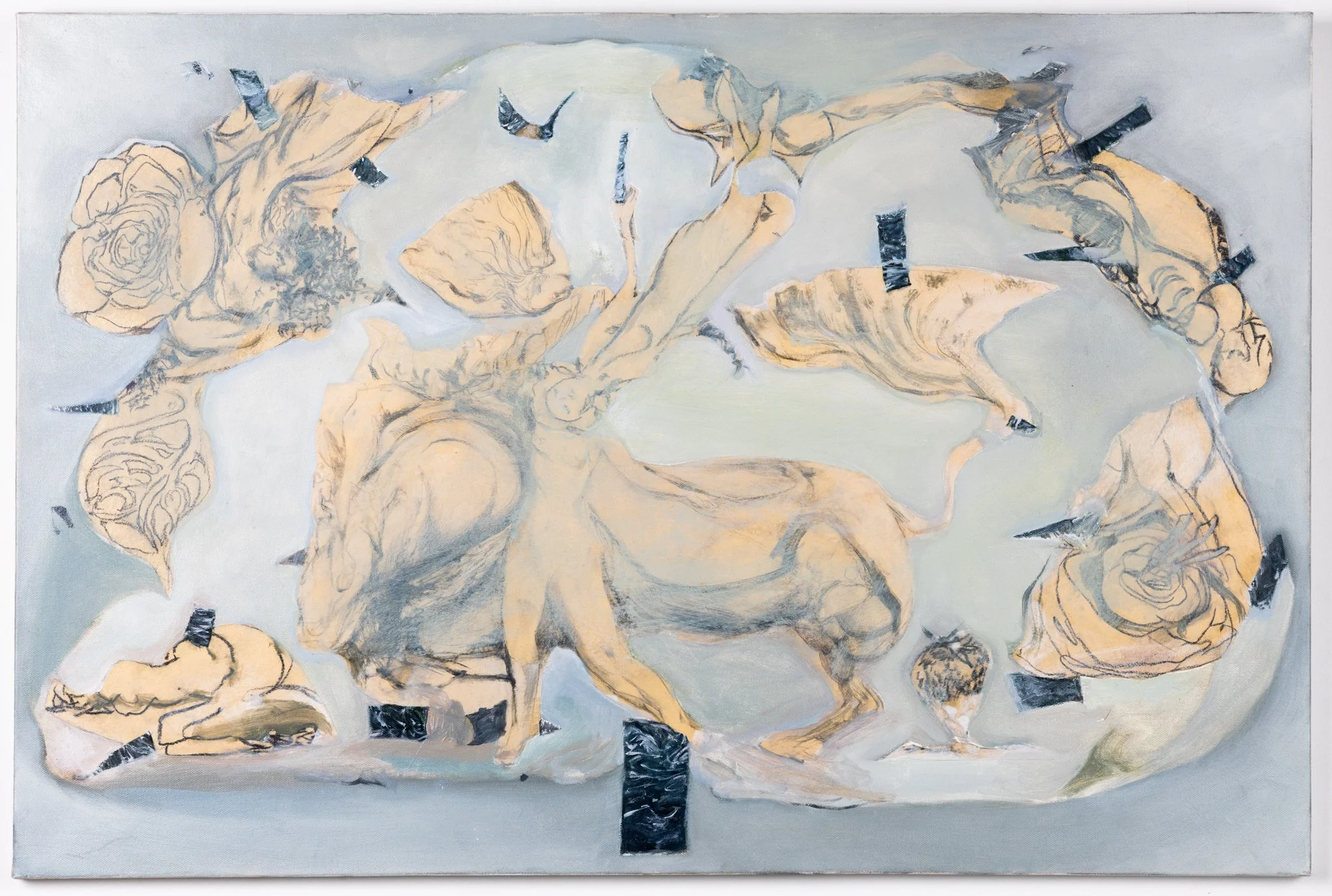 Lovers in Limerence, 2025, Oil and charcoal collage on canvas, 36 × 24 in